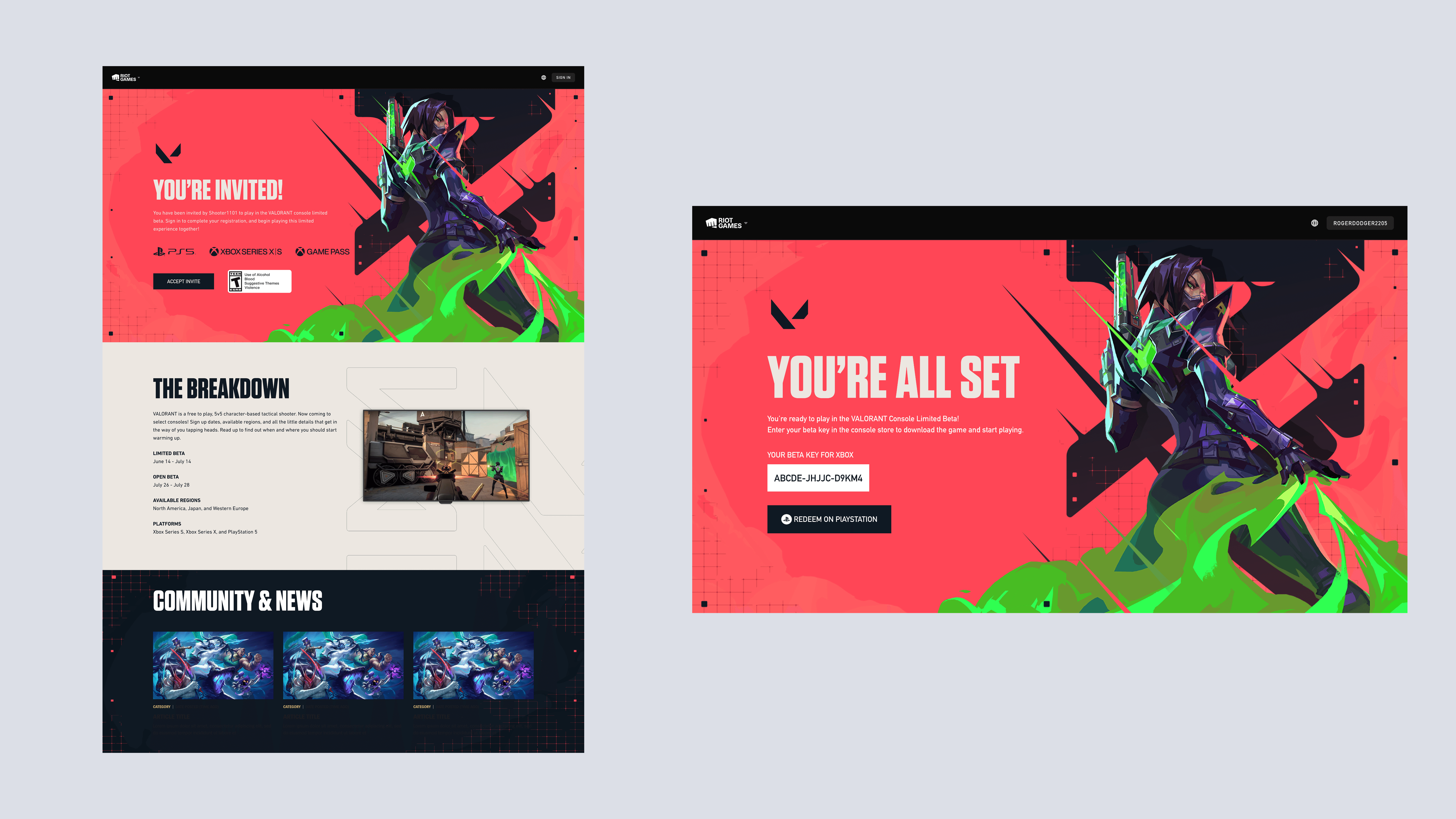 Led the creation of onboarding and invitation player workflows for VALORANT's console launch event. Coordinated workflows across teams and disciplines from inception through delivery.